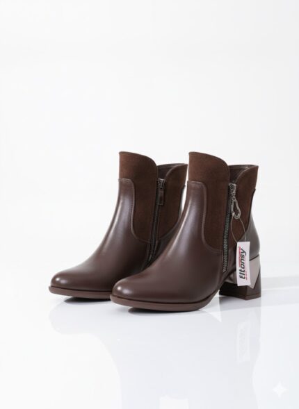 خامات متناغمة (Mix & Match): يتميز البوت بتصميم فريد يمزج بذكاء بين خامة الجلد المصقول أو الصناعي الفاخر في المقدمة وخامة الشمواه الناعمة على الأجزاء العلوية، مما يمنحه ملمساً بصرياً غنياً.