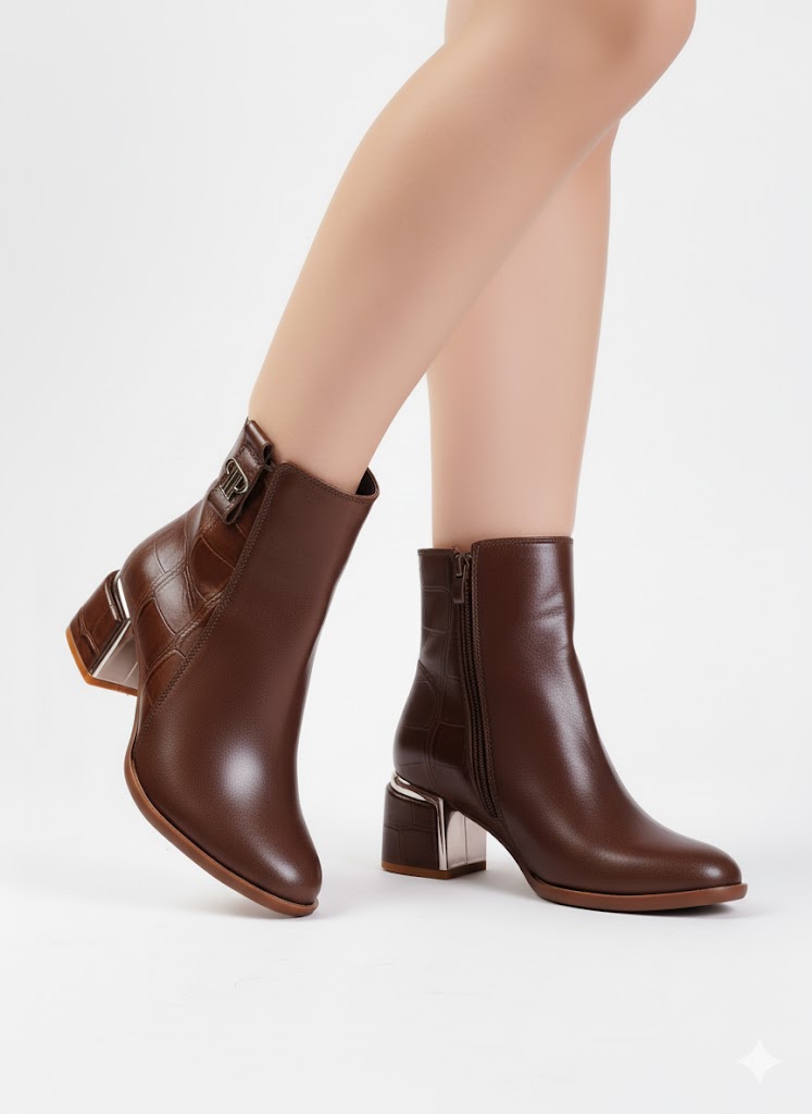 “استقبلي فصل الشتاء بأناقة وثقة مع هذا البوت القصير الأنيق. يجمع هذا التصميم بين المظهر العصري والراحة المثالية للارتداء اليومي.