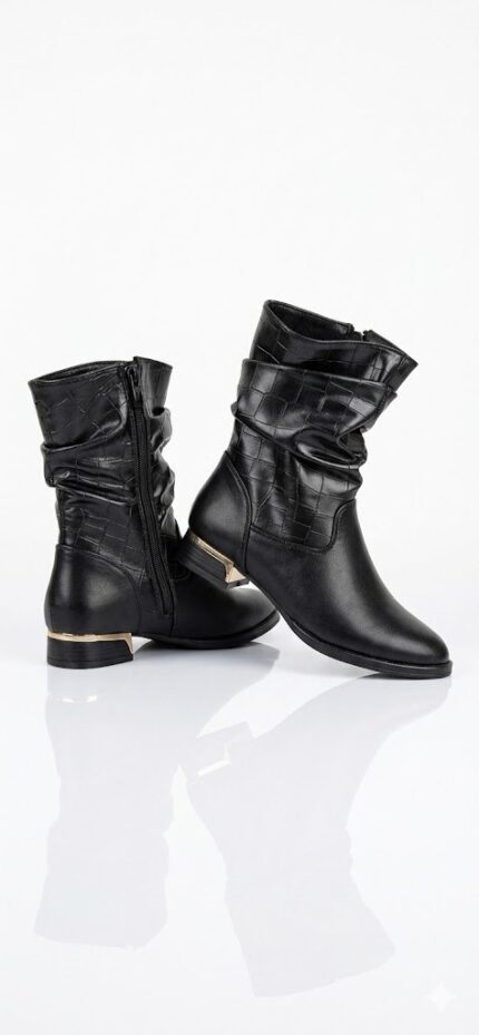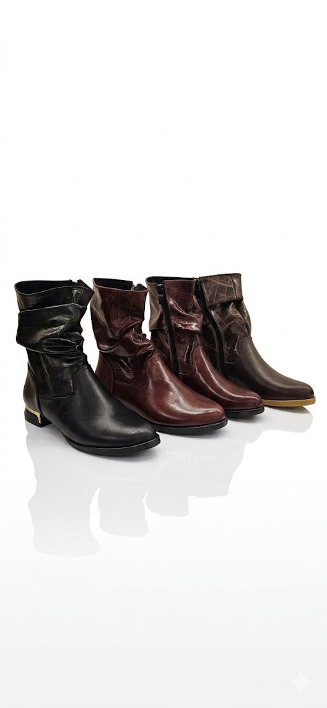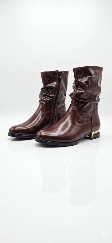 بوت نسائي “أنكل بوت” جلد بتصميم مزموم (Slouchy) وتفاصيل معدنية أنيقة – متوفر بـ 3 ألوان راقية