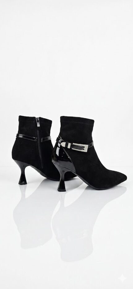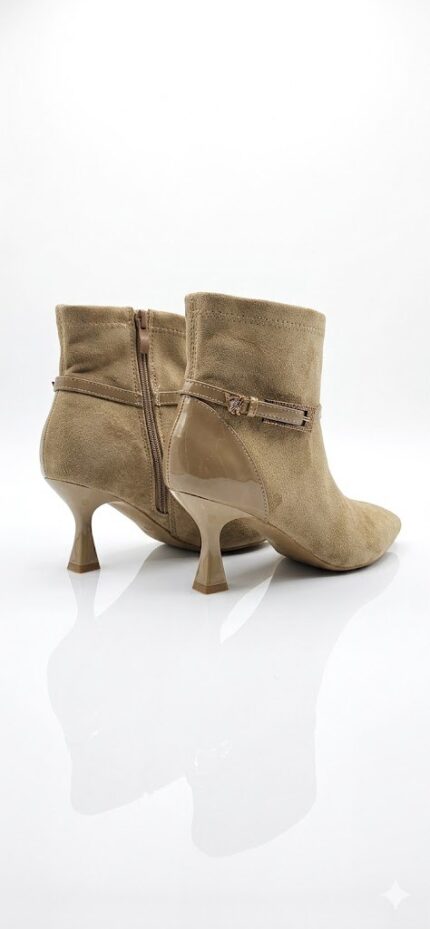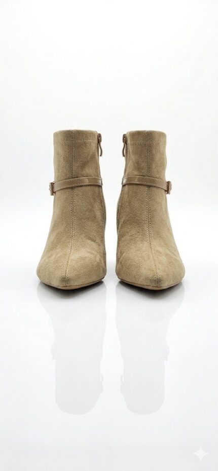 أضيفي لمسة من الرقي إلى إطلالتك الرسمية والمسائية مع هذا البوت الأنيق. يتميز الحذاء بخامة الشامواه الناعمة وتصميمه الانسيابي الذي ينتهي بمقدمة مدببة، مما يمنح ساقيكِ مظهراً أكثر طولاً وأناقة. القطعة المثالية لتكتمل بها أناقتك في العمل أو المناسبات الخاصة. المميزات الرئيسية: • خامة شامواه راقية: ملمس ناعم يضفي فخامة فورية على أي طقم ملابس. • كعب كيتن (Kitten Heel): يوفر لكِ الطول المثالي مع الحفاظ على التوازن والراحة طوال اليوم. • تفاصيل الإبزيم: حزام زينة أنيق مع إبزيم معدني يحيط بالكاحل لمزيد من التميز. • مقدمة مدببة (Pointed Toe): تصميم كلاسيكي جذاب يعزز من أنوثة المظهر. • سحاب جانبي: يضمن سهولة اللبس مع الحفاظ على انسيابية شكل الحذاء. • الألوان المتوفرة: الأسود الملكي والبيج الداكن