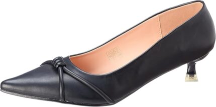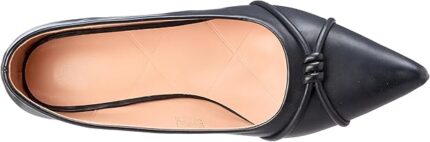 تصميم أنثوي مميز: يتميز بمقدمة مدببة أنيقة (Pointed Toe) وعقدة ناعمة مزينة بإكسسوار ذهبي، ليضفي لمسة من الجاذبية الراقية على مظهرك.