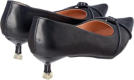 راحة كعب القطة (Kitten Heel): الكعب الرفيع القصير يوفر الارتفاع المثالي دون التسبب بالإجهاد، مما يجعلك تشعرين بالثبات والراحة طوال ساعات العمل الطويلة أو المناسبات.