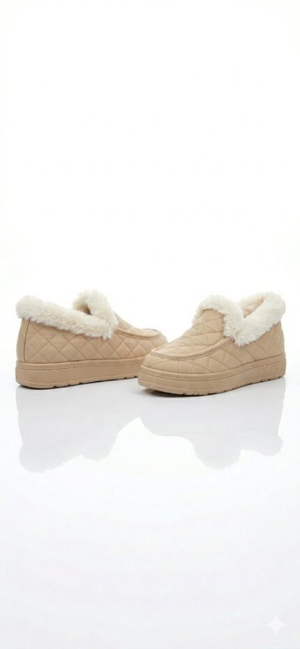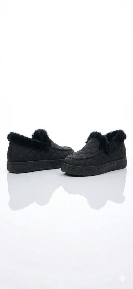 حذاء “سليب أون” شتوي نسائي مبطن بالفرو بتصميم كويليتد (Quilted) – دفء وأناقة لكل يوم