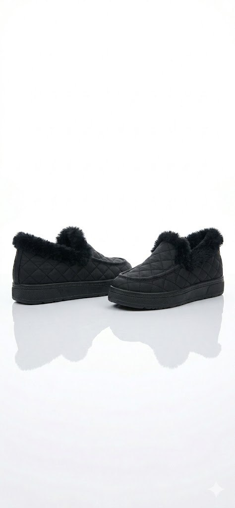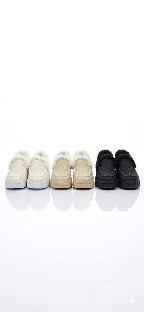 مع حواف من الفرو الناعم التي لا توفر الدفء فحسب، بل تضفي لمسة أنثوية مميزة على إطلالتك اليومية. هذا الحذاء هو الخيار المثالي للمرأة التي تبحث عن قطعة عملية وسهلة الارتداء دون التنازل عن الأناقة في المنزل أو خلال الخروجات السريعة.