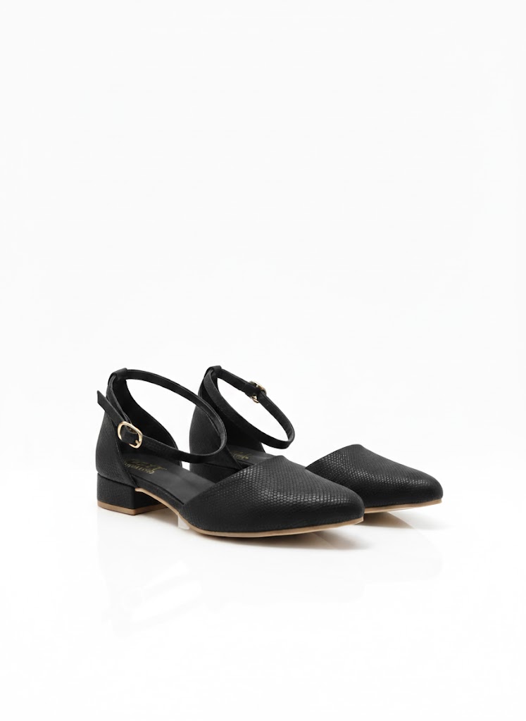 راحة تدوم: مُصمم بكعب عريض ومنخفض ليوفر لكِ ثباتًا وراحة استثنائية، مما يجعله الخيار الأمثل للمناسبات الطويلة وأيام العمل.