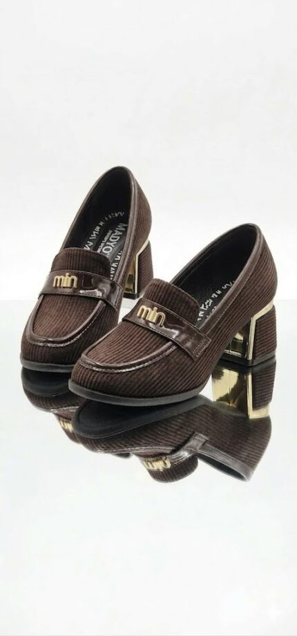 إكسسوار معدني (Branding): مزين بشعار معدني ذهبي (mln) على المقدمة، يضيف لمسة من الرقي ويكمل تناغم التصميم مع الكعب.