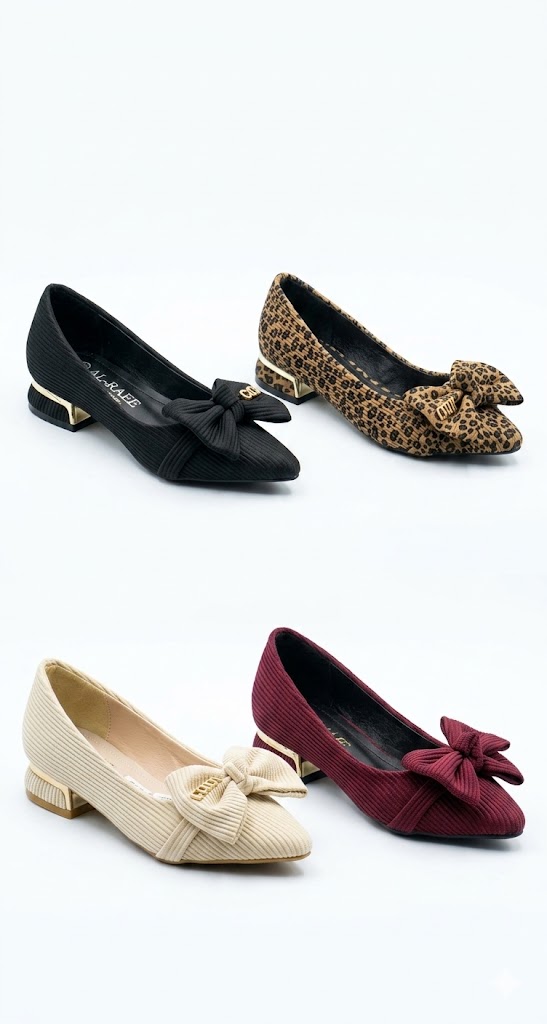 هذه المجموعة ليست مجرد أحذية، بل هي تجسيد للذوق الرفيع، حيث تتزين كل قطعة بفيونكة مخملية متناسقة مزودة بتوكة ذهبية تحمل شعار “Min” لتمنحك لمسة من البريق الكلاسيكي.