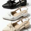 كعب عريض ومريح: كعب “Chunky block heel” صغير مصمم هندسياً لتوفير الثبات والراحة طوال اليوم، مع لمسة ذهبية تكميلية على القاعدة.